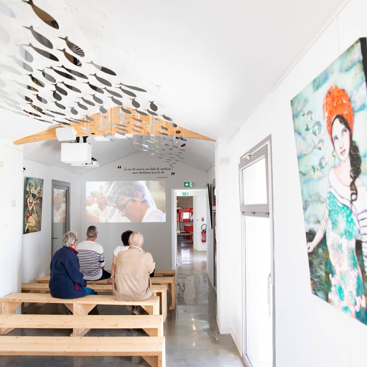 L’Atelier de la Sardine vous propose une projection d’une vingtaine de minutes, retraçant les différentes étapes de la pêche à la sardine jusqu’à sa mise en boîte. Des images d’archive et des témoignages des marins et des fidèles sardinières vous en apprendront un peu plus sur ce fabuleux savoir-faire.